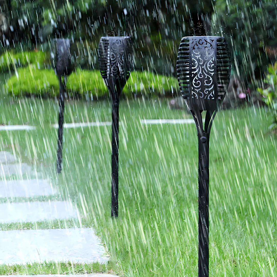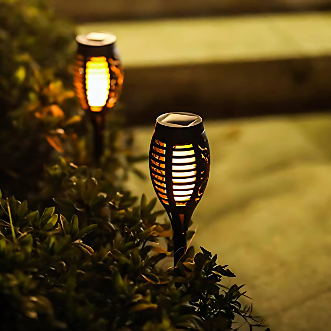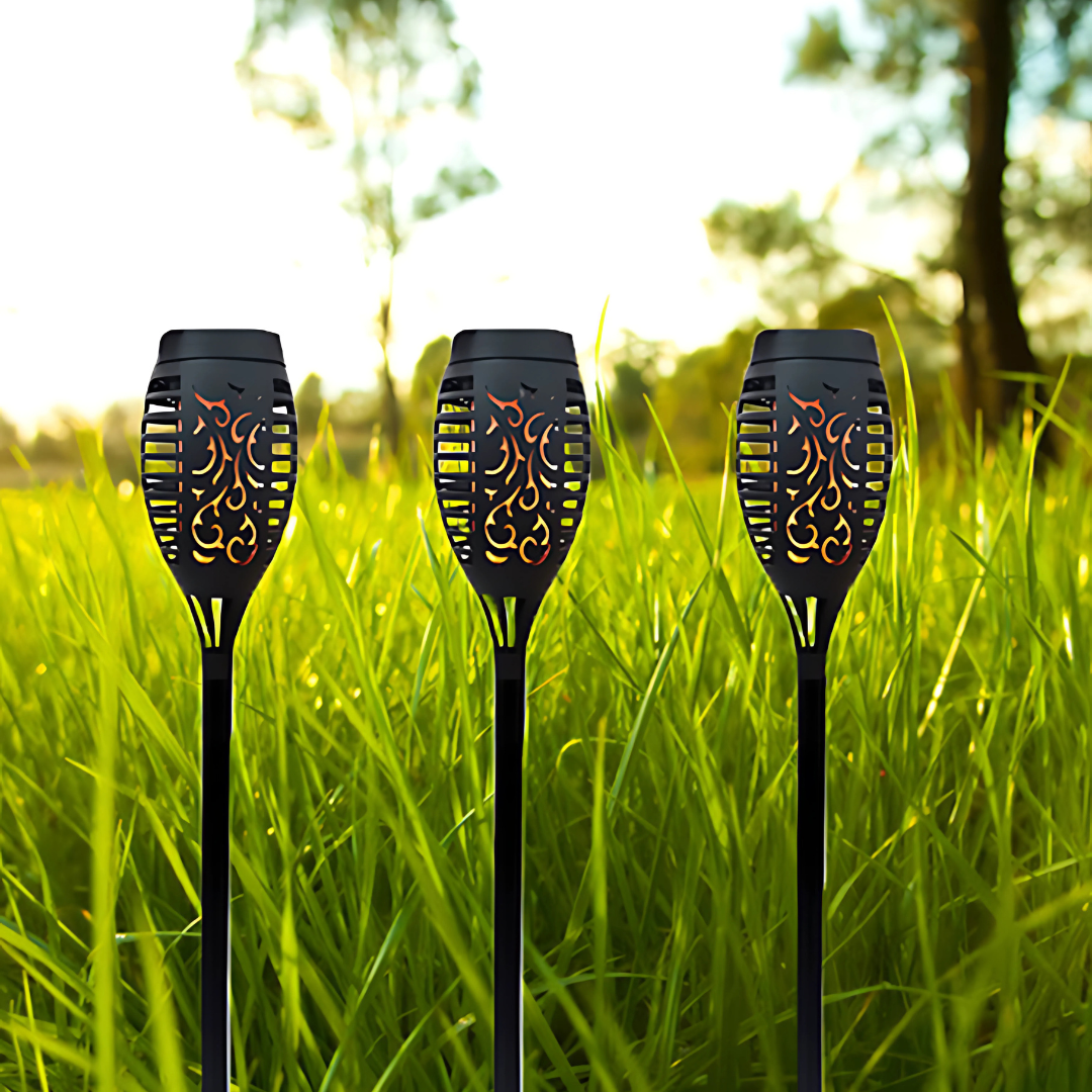 Découvrez FLAME, un pack de 2 torches solaires étanches qui recréent à la perfection l’illusion d’une flamme dansante, pour une mise en scène spectaculaire de votre jardin, de vos allées ou de votre terrasse.