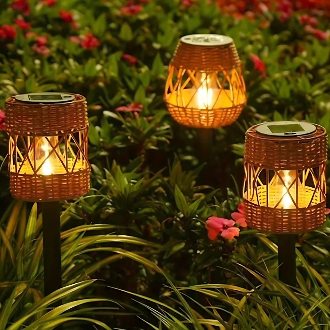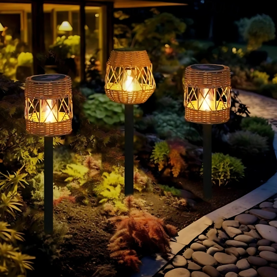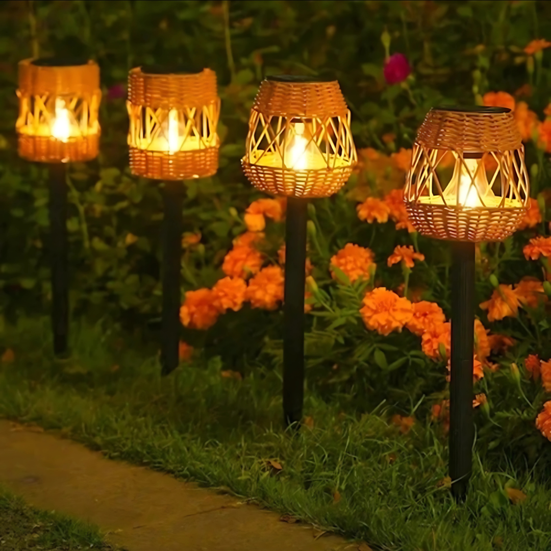 Créez une ambiance chaleureuse et raffinée dans votre jardin avec PYANA, la lampe à planter au design rotin inspiré de l’artisanat naturel.